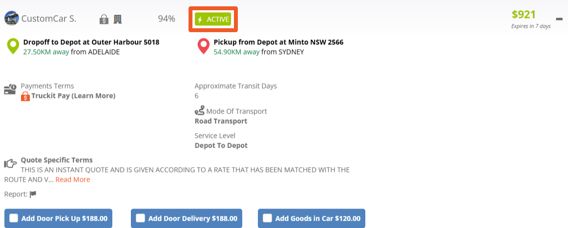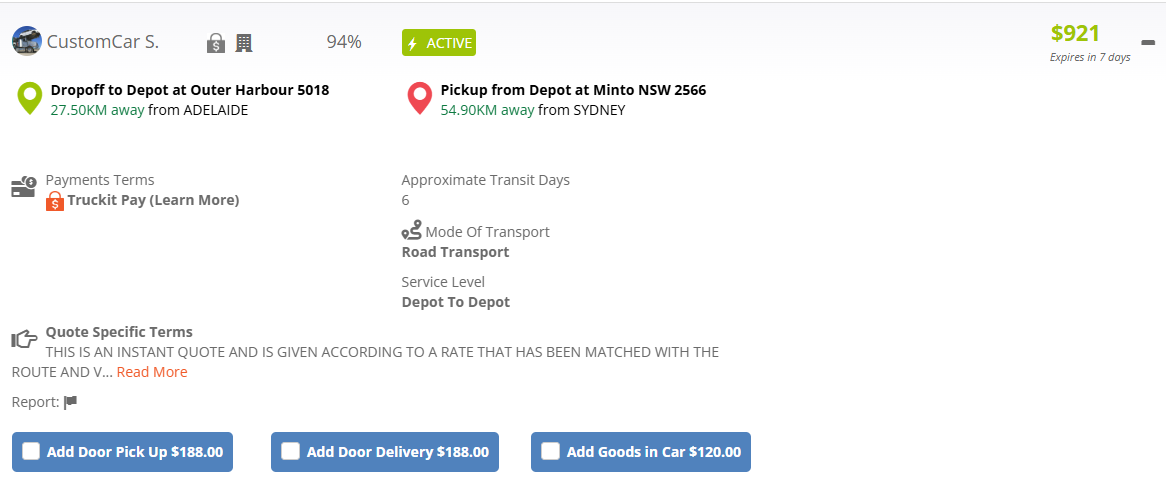 Unlike car transport, instant pallet quotes do include access to the messaging system, so you can contact the provider directly. However, we recommend reading the quote terms first, as many common questions are answered there.